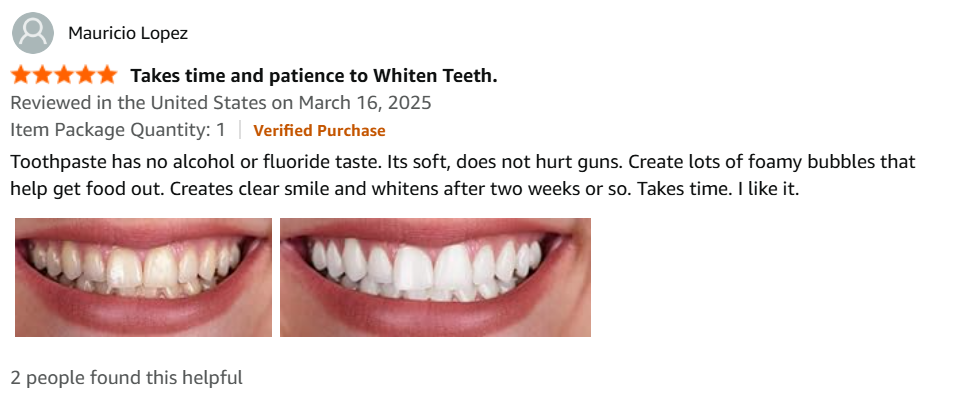 Thanks this probiotic toothpaste product the stains on my teeth has faded away since the first application. I have been smoking cigarettes for the last 5 years. My teeth were covered with yellow and black stains. I could have never imagined I would be able to smile like this again. Thank you so much again.